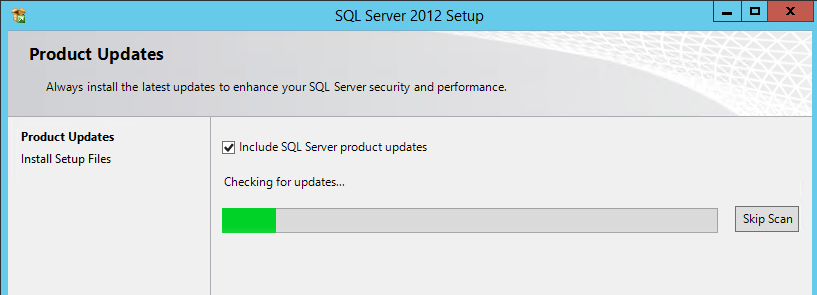 - On the next screen, you will see that SQL setup is checking for the product update. Let the process finish. If there are updates the screen will show them. Otherwise, once checking is complete, click Next.