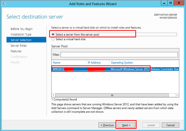 - Select the appropriate server (we are installing IIS on a local server so keep the local selected by default), then click on “Next“