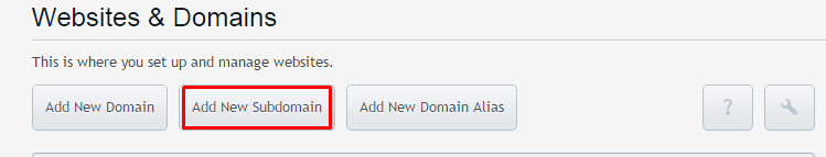 Once you logged in Plesk control panel under websites & domains click on “Add New Subdomain” button.