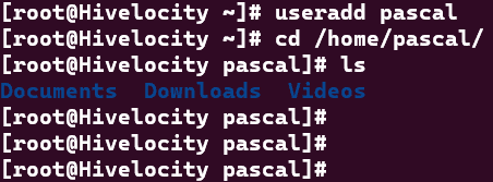- View the home directory of the new user using ls /home/pascal in which the new directories will appear.
