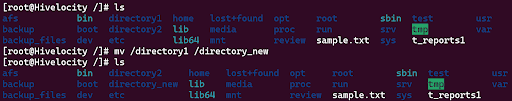 Note: If no “/directory2” exists, /directory1 will be renamed as “/directory2”, essentially “moving” it into a newly created directory, otherwise, all content from /directory1 will move to /directory2.